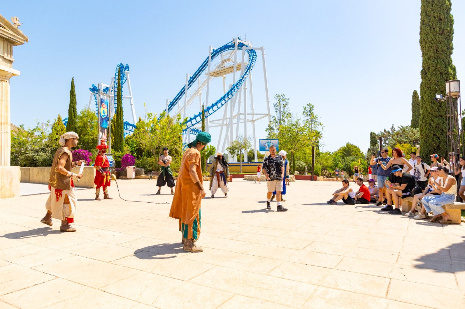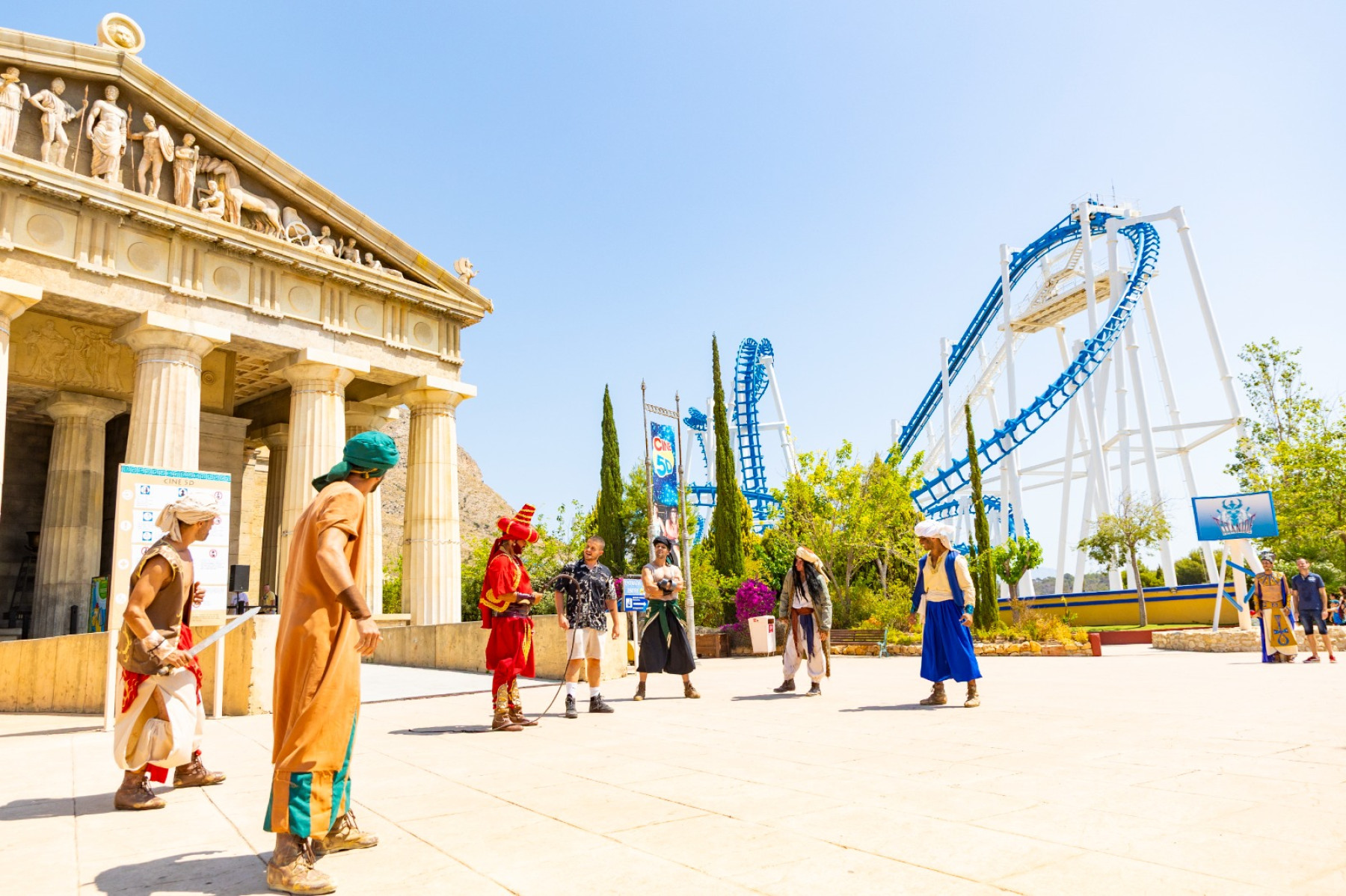 With five distinct zones, the journey through the fabulous Terra Mítica takes you to Ancient Greece, Egypt, Rome, Iberia and the Mediterranean Islands - each themed zone with it's own adventures and experiences to enjoy. Your performance will take place in the open air in the Greek area.